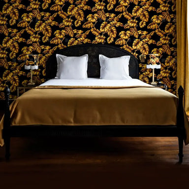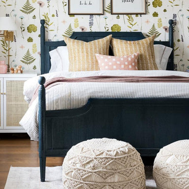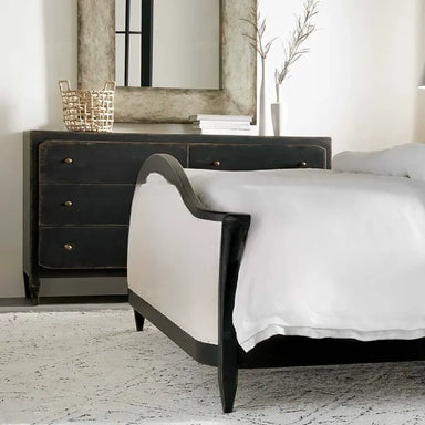Introducing the Prue Black Rattan Neoclassical Wedding Bed, a stunning fusion of elegance and sophistication that redefines luxury in wedding acco...