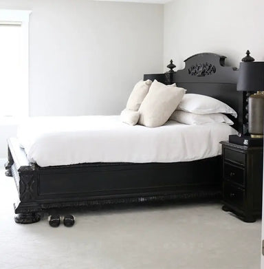 Introducing the Rosette Elegant Solid Wood Wedding Bed, a stunning centerpiece for your bedroom that combines timeless design with unparalleled cr...