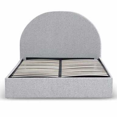 Pepper boucle fabric upholstery Fabric in a 81% polyester and 19% acrylic blend Frame and detailing in an engineered wood construction Bed slats i...