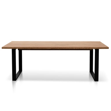 Natural oak veneer table top Oak legs for added support Powder black finish Seats up to 10 people Flat-packed: Assembly required Note: Melbourne p...