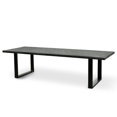 Reclaimed elm wood table top in a black finish Black powder coated steel legs Seats 6-8 people Assembly required Note: Melbourne pick-up and deli...