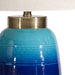The Indigo Lamp features an ombre design, moving from azure to a rich indigo and featuring a brass fitting.