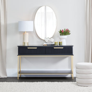 Classic contemporary in design, the small Aimee console table in black features fluted drawer fronts and an elegant streamline profile in a chic sa...