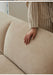 Deep seats, soft fabric, and such a calming color. This was the best thing we bought all year, hands down.