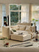 Deep seats, soft fabric, and such a calming color. This was the best thing we bought all year, hands down.