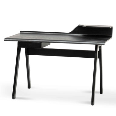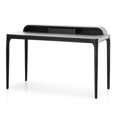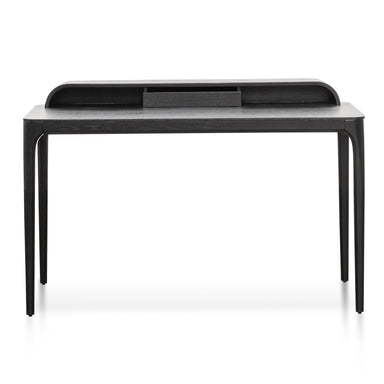 Table top in engineered wood with black ash veneer finish Sturdy flared and tapered legs in solid ash construction In-built display shelf and bel...