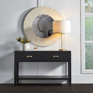 this textured round mirror. Available in white for a serene, beachy feel or black for bold, dramatic interiors, it complements a range of sp...